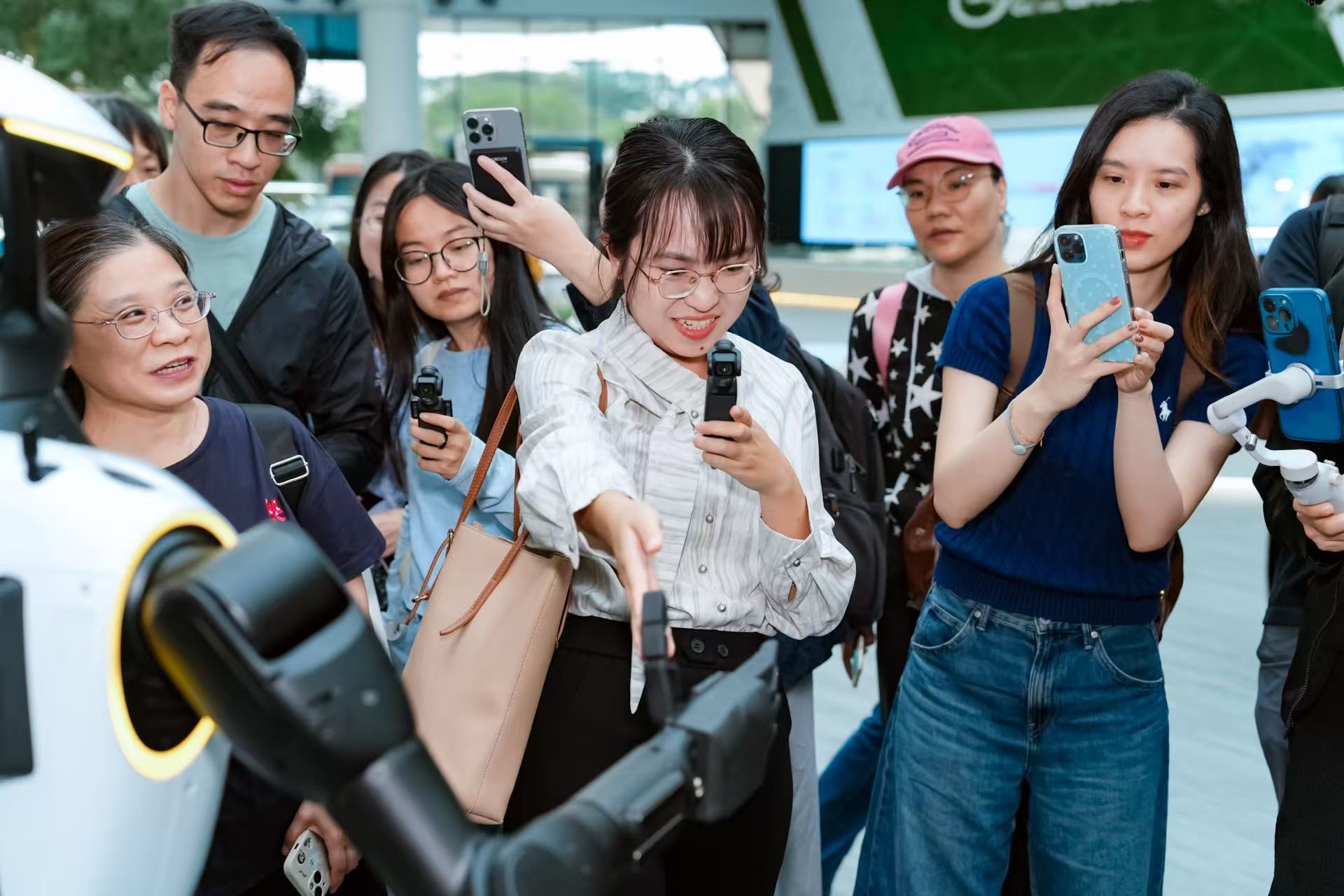 当天,市民纷纷“试驾”昊铂新款车型、飞行汽车,还与具身智能机器人握手交流,深入埃安“灯塔工厂”观看汽车总装流水线,了解超快充、电驱等先进技术。体验者唐女士兴奋地表示:“机器人能和我们握手、跳舞,飞行汽车在应急、空中交通的布局让我很震撼,而且这些车辆耗能很低,很自豪我们广州的企业能生产出这么多高科技的产品。”